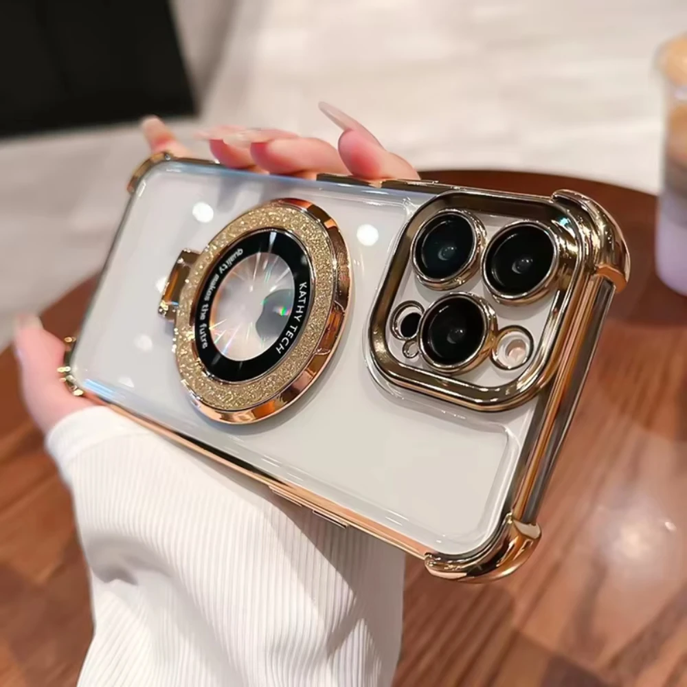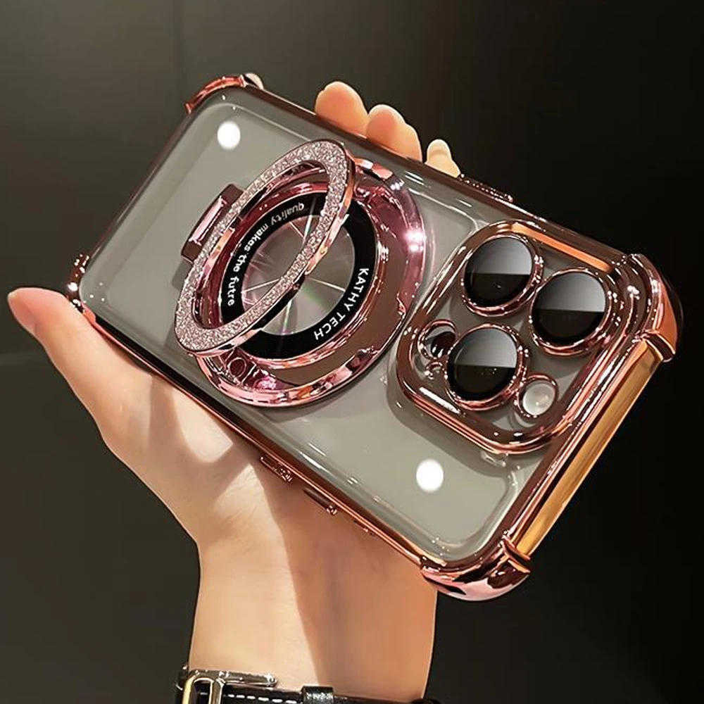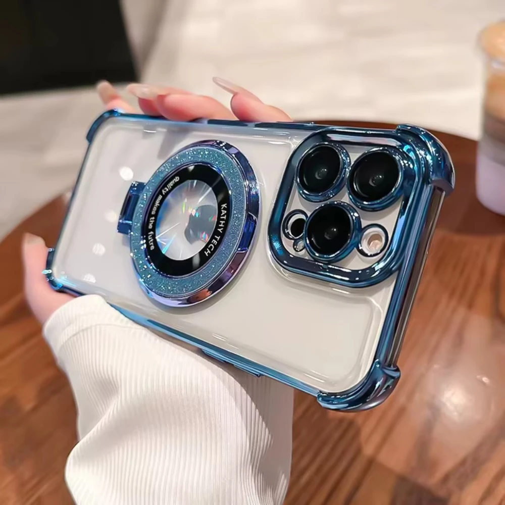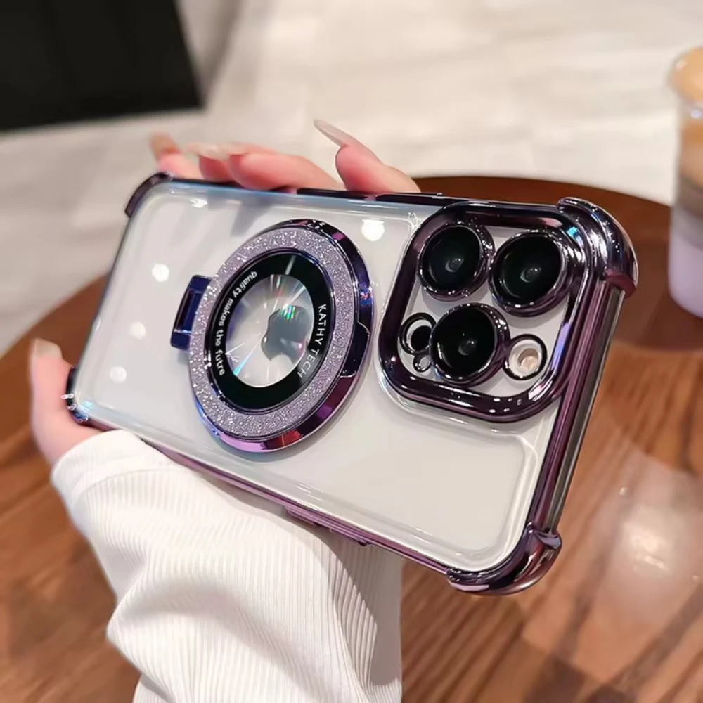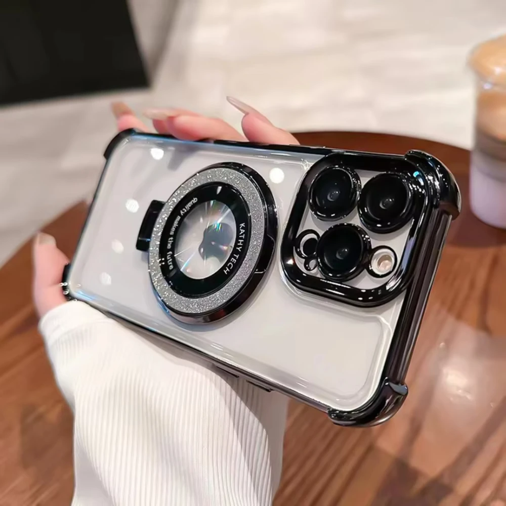 Luxury Glitter Stand Phone Case For iPhone 16 11 12 13 14 15 16 Pro Max Plus funda for Magsafe Magnetic Shockproof Phone Cover