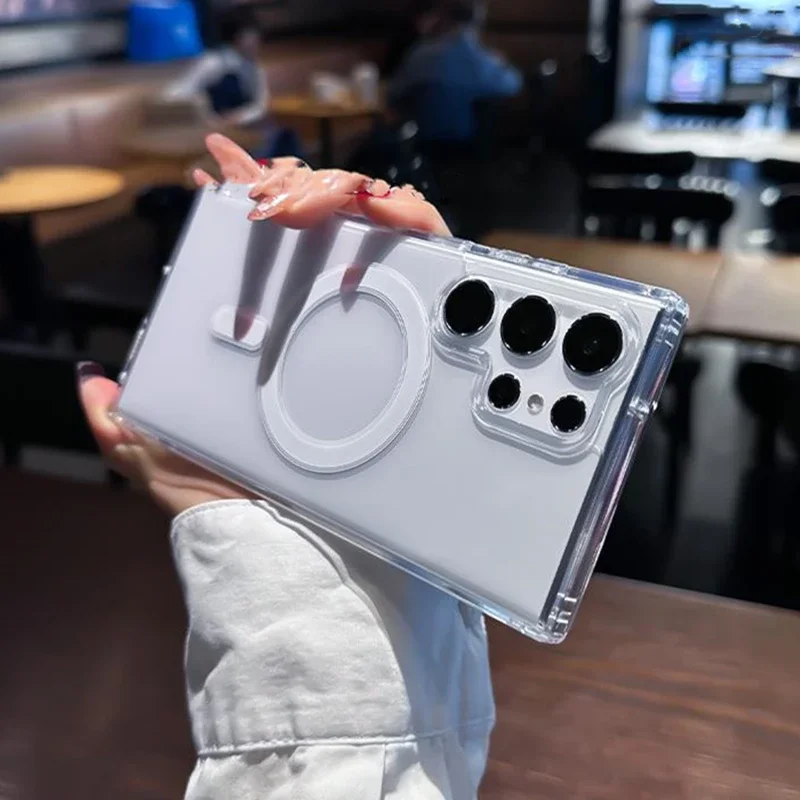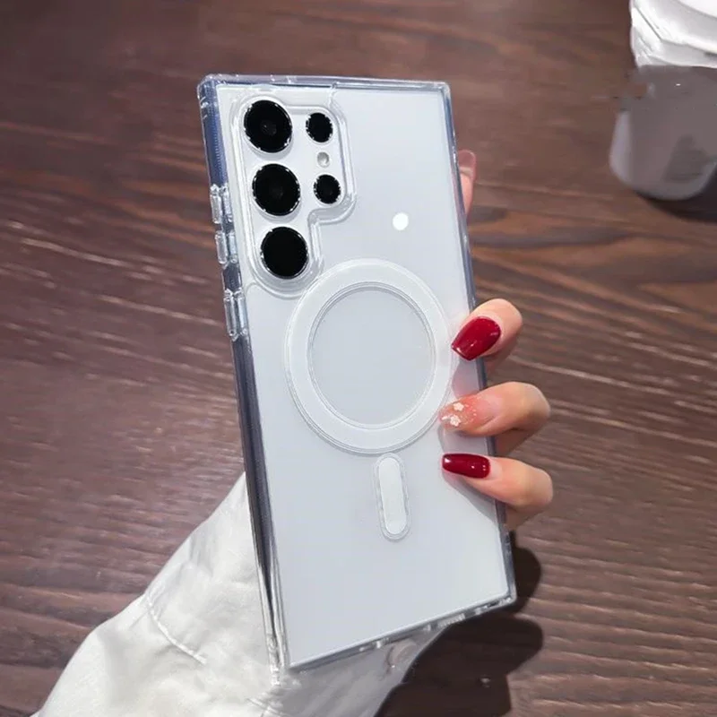 Original Magsafe Magnetic Case for Samsung Galaxy S24+ S21 FE S22 Plus S23 Ultra Plus Wireless Charging Shockproof Clear Cover